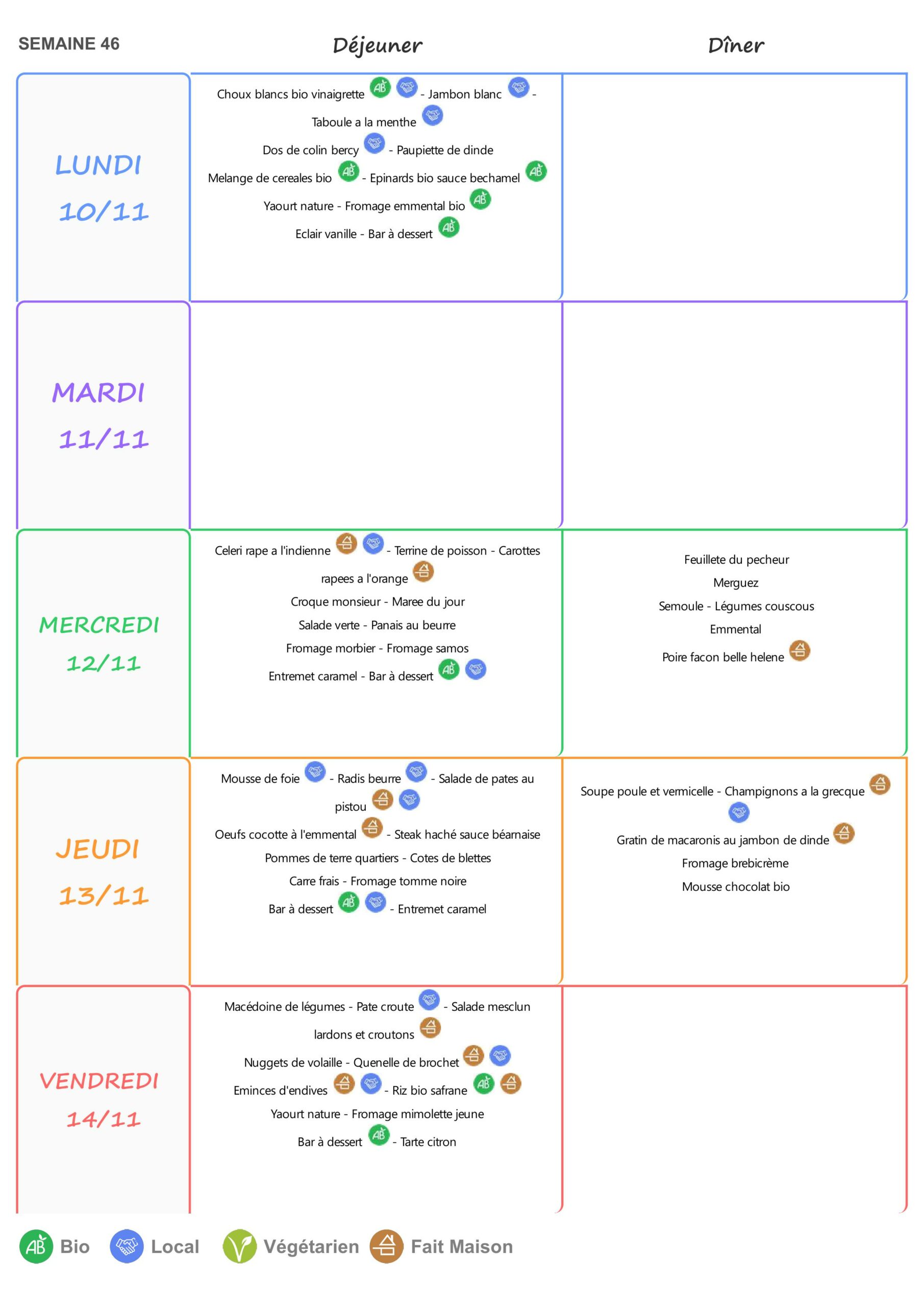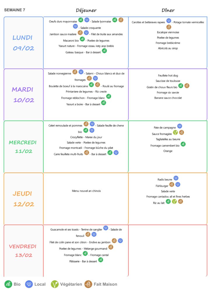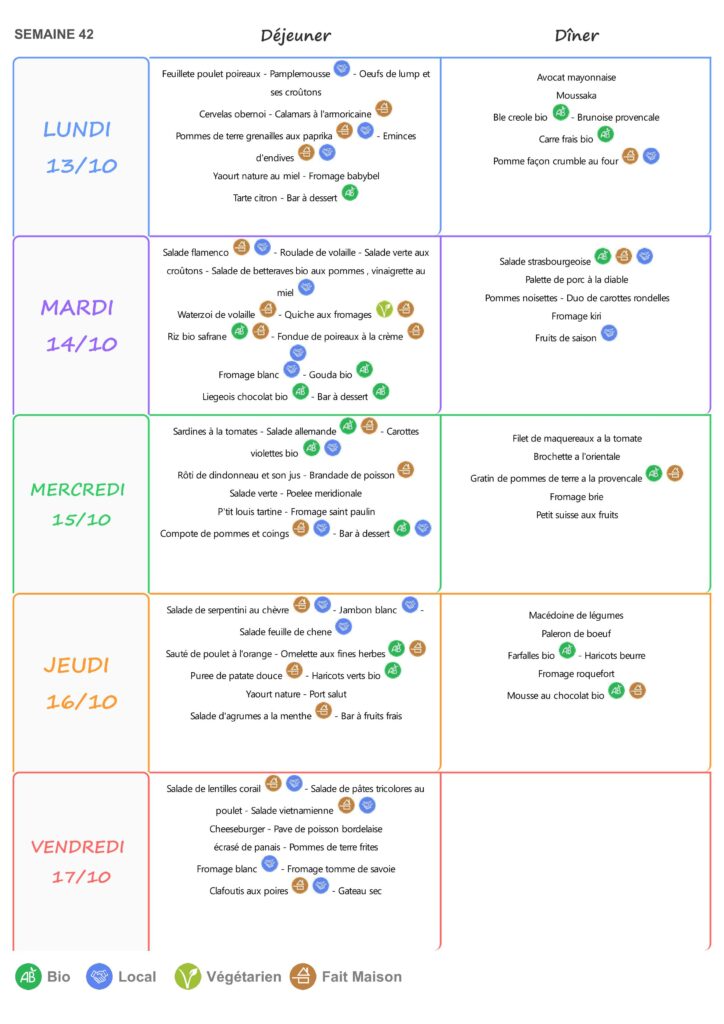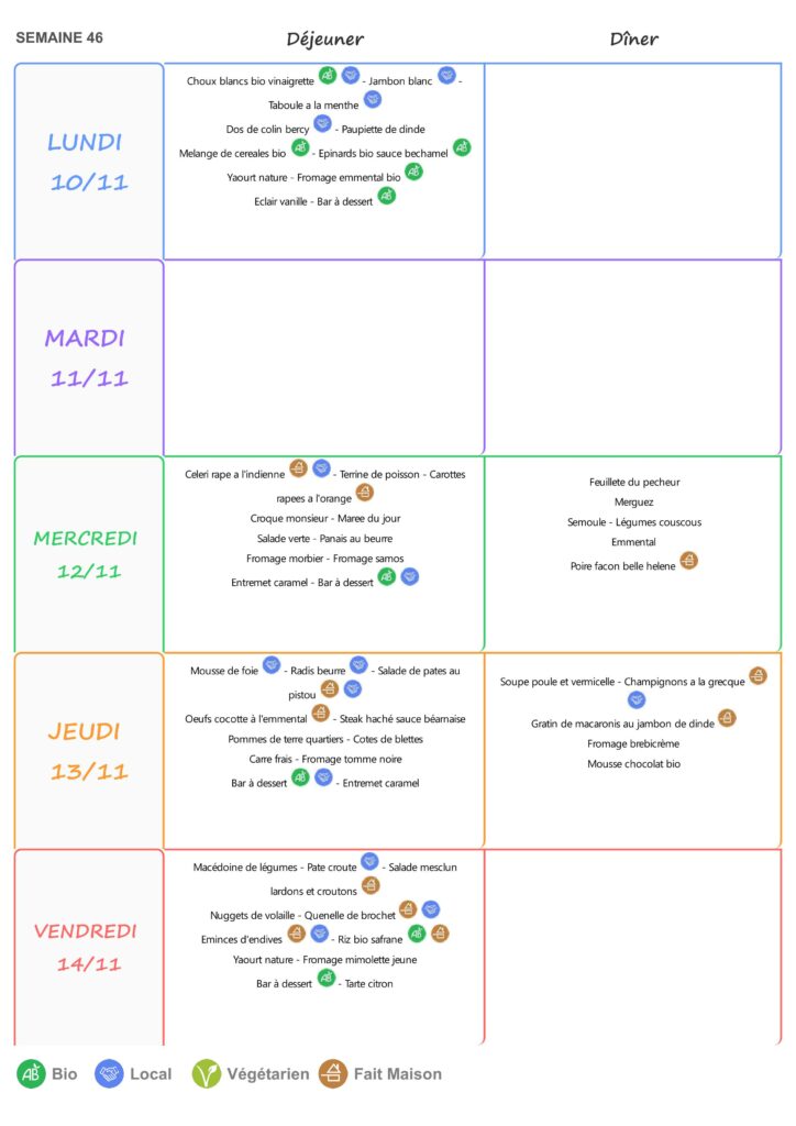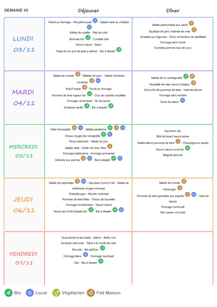 Le self est ouvert de 11h15 à 13h15 du lundi au vendredi.