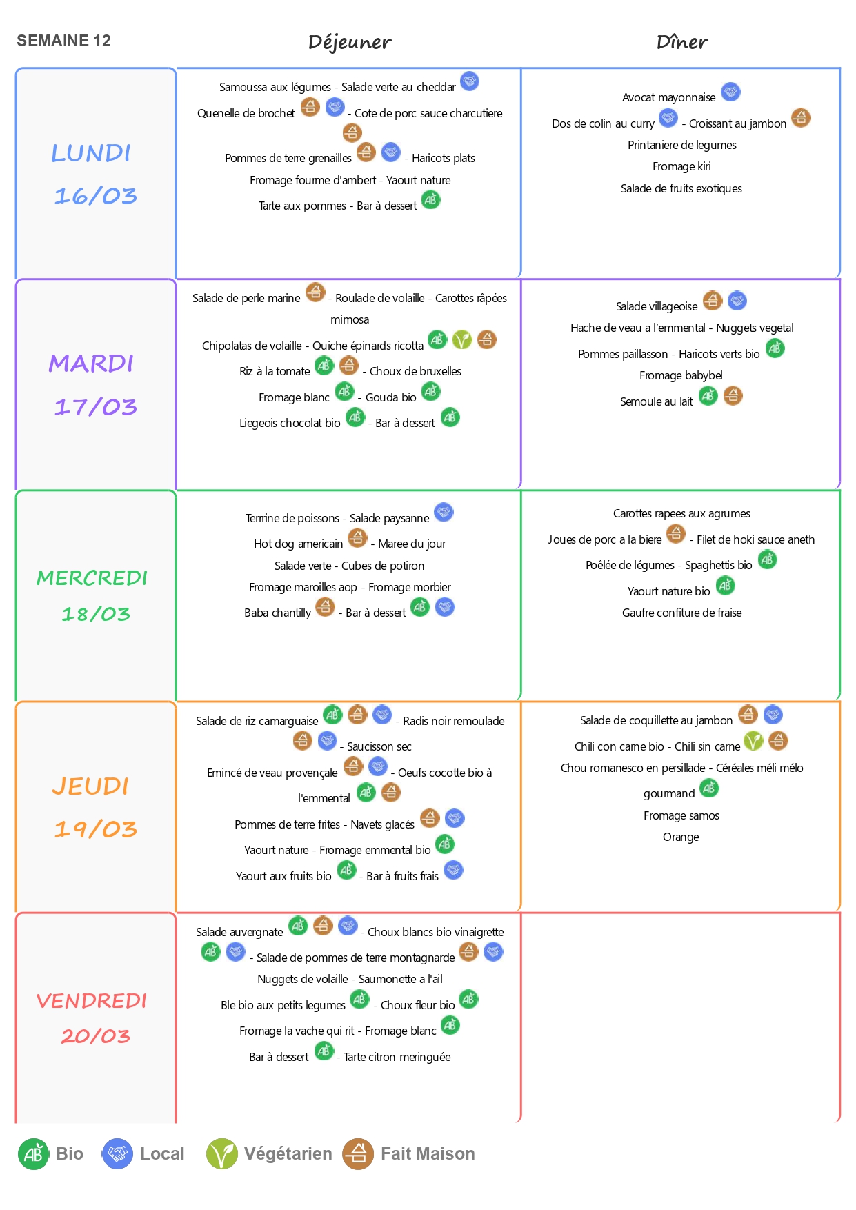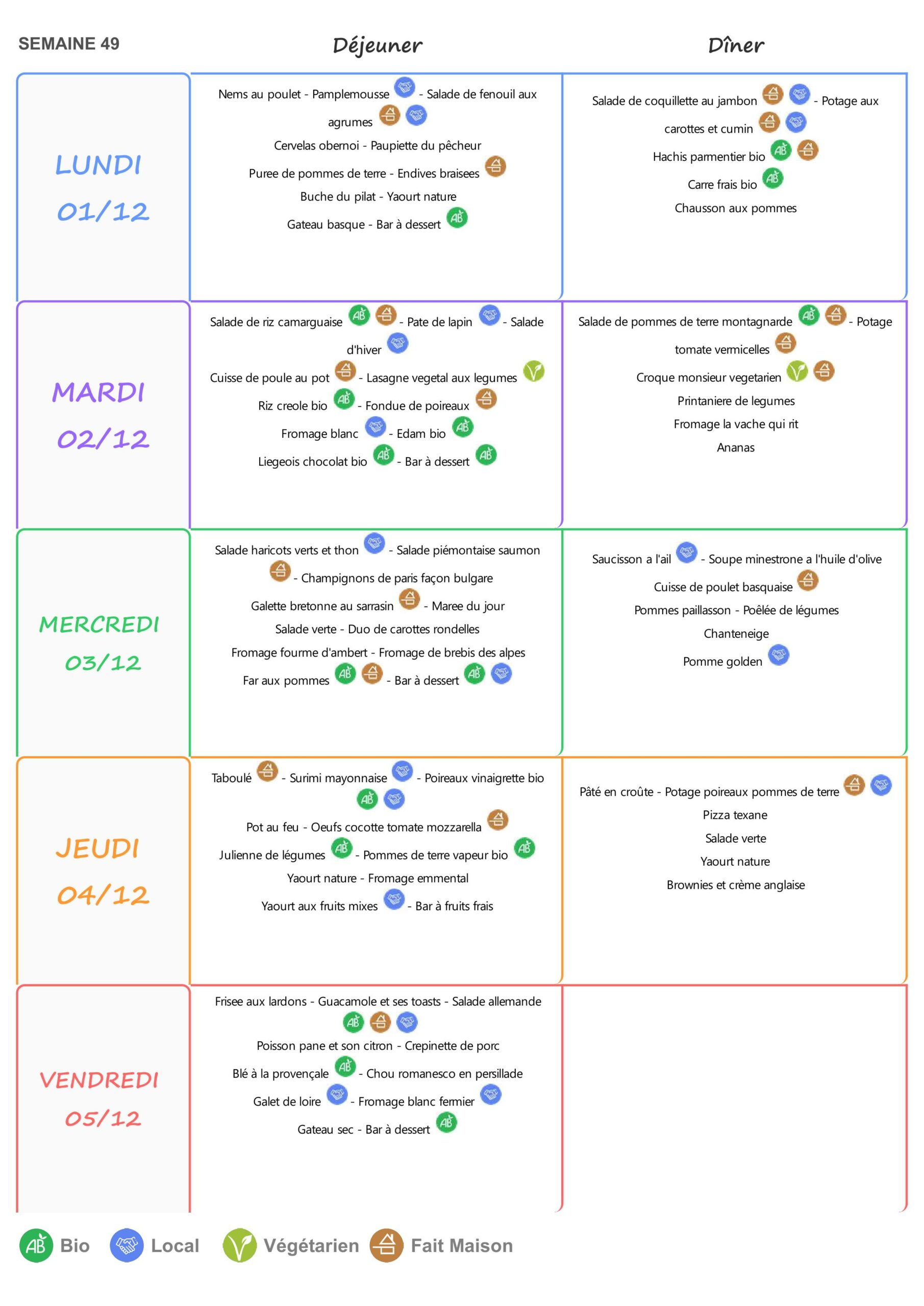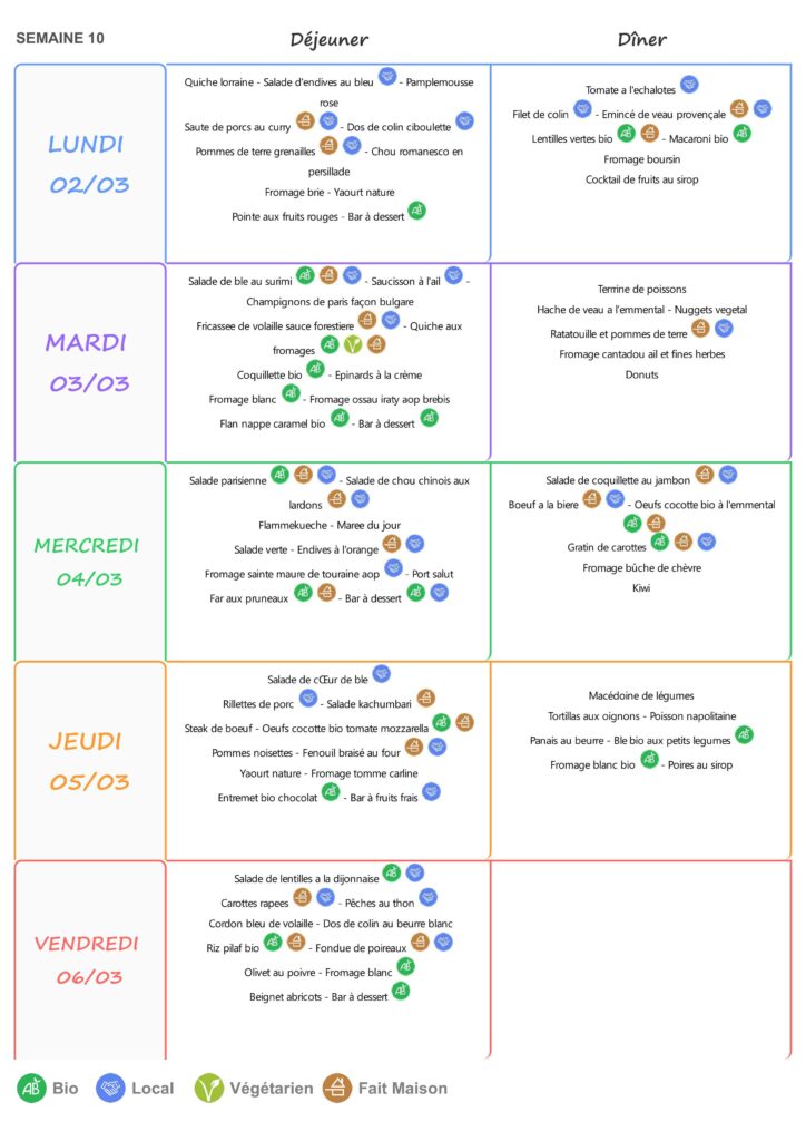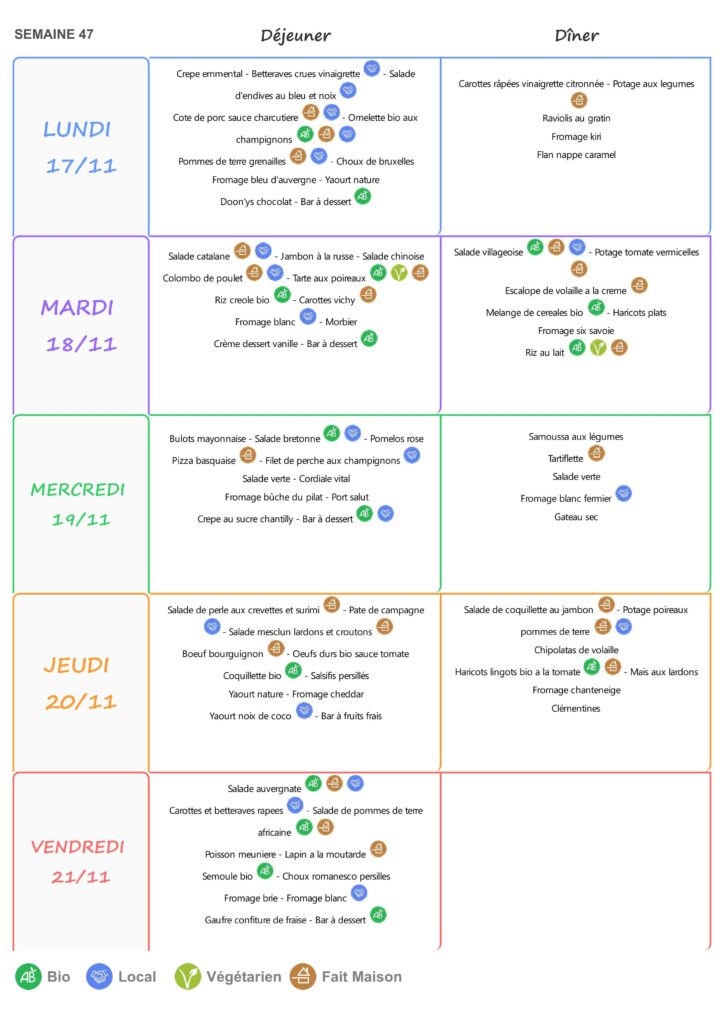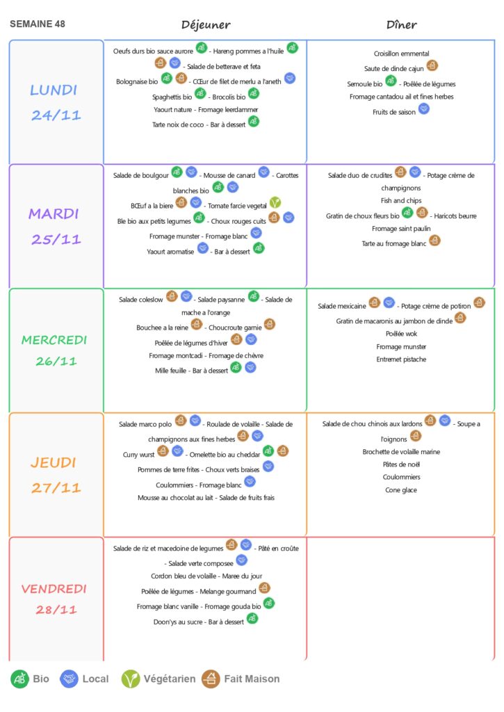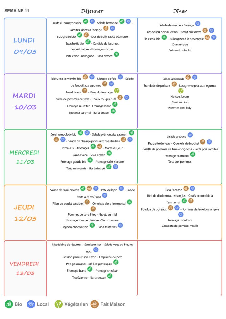 Le self est ouvert de 11h15 à 13h15 du lundi au vendredi.